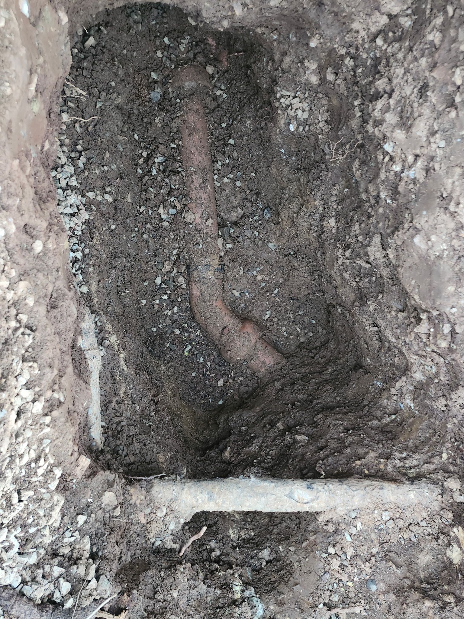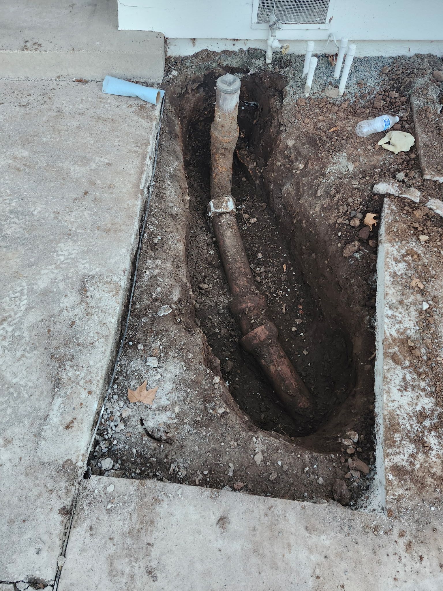 Many older homes in the Concord area still have clay sewer pipes, which can crack, collapse, or become invaded by tree roots over time. In this project, the team removed the aging clay pipe and installed a new PVC sewer lateral, providing a stronger and more reliable solution.