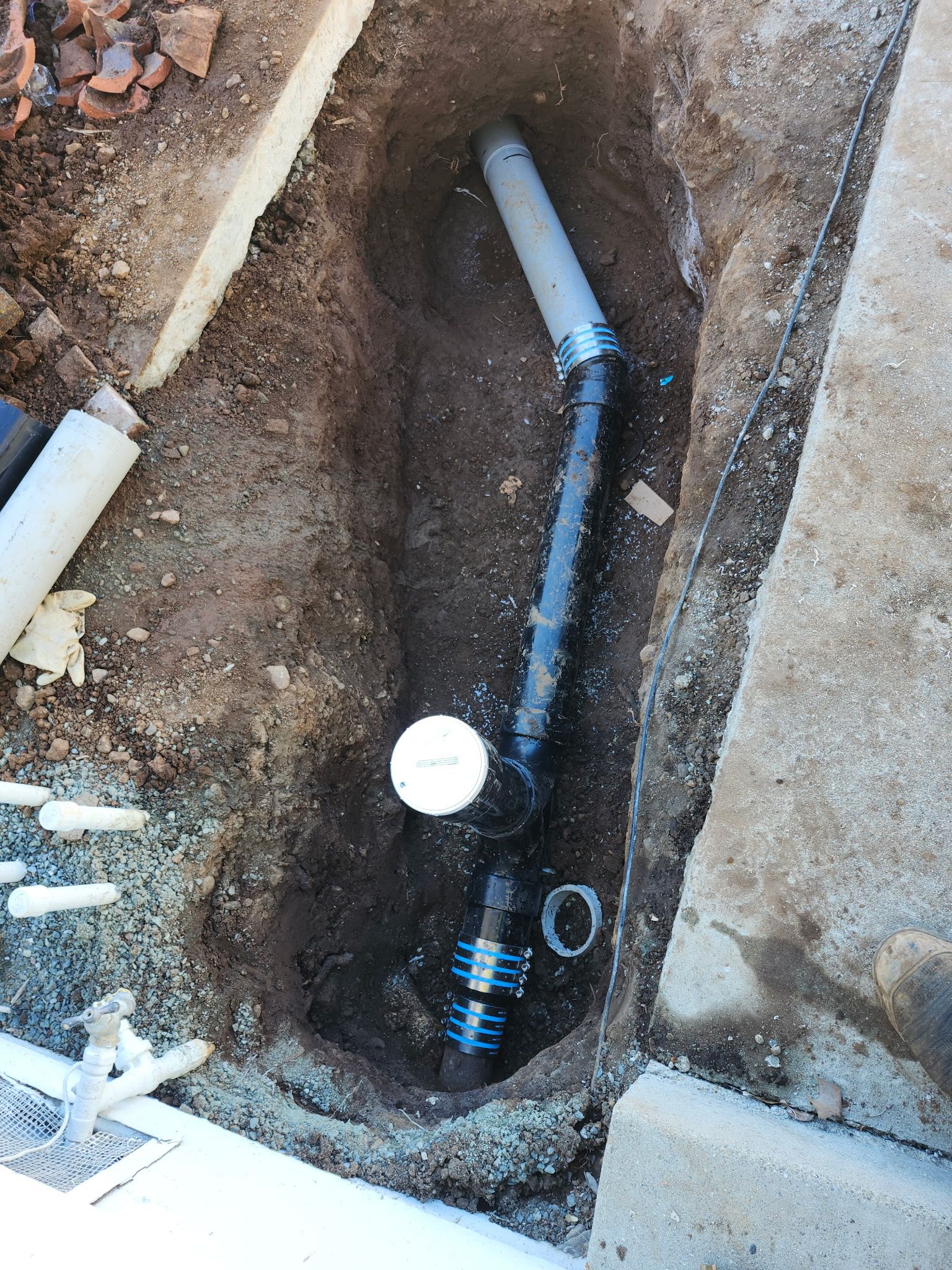 Warranted Plumbing recently completed a sewer lateral replacement project in Concord, CA, upgrading an old, deteriorating clay sewer pipe with a new high-quality PVC sewer line.